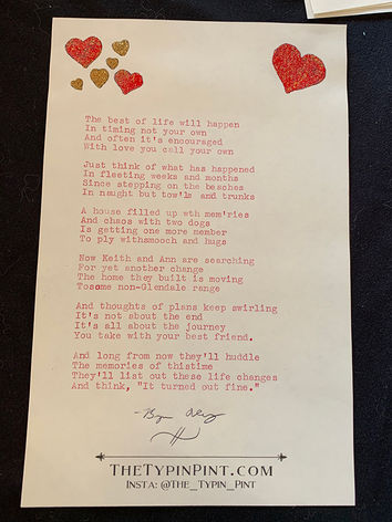 There's nothing like seeing your name, and a whole poem about you, wrought through a typewriter. There's no Delete key. No going back. Just you and the words - sweet, surprising, rhyming words that tell a story about YOU.
